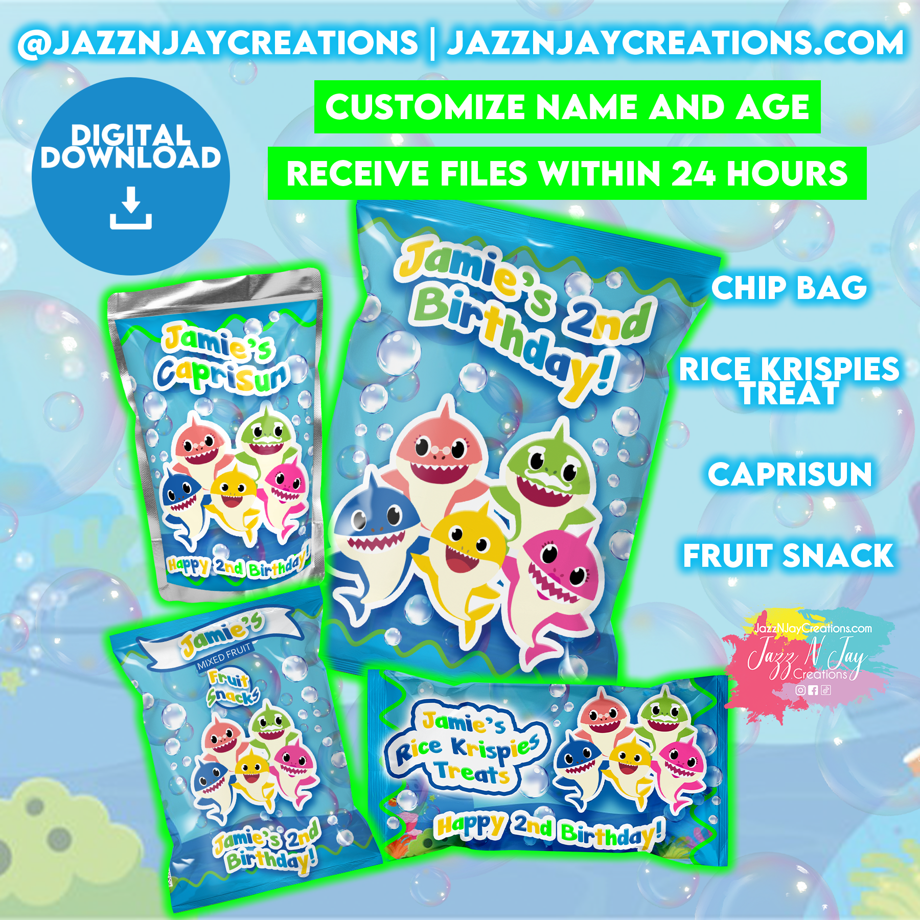Teacher, birthday party, Toddler Birthday, 1st birthday, 2nd birthday, 3rd birthday, party ideas, digital download, template, digital file, printable party favors, baby shark party favors, baby shark chip bags