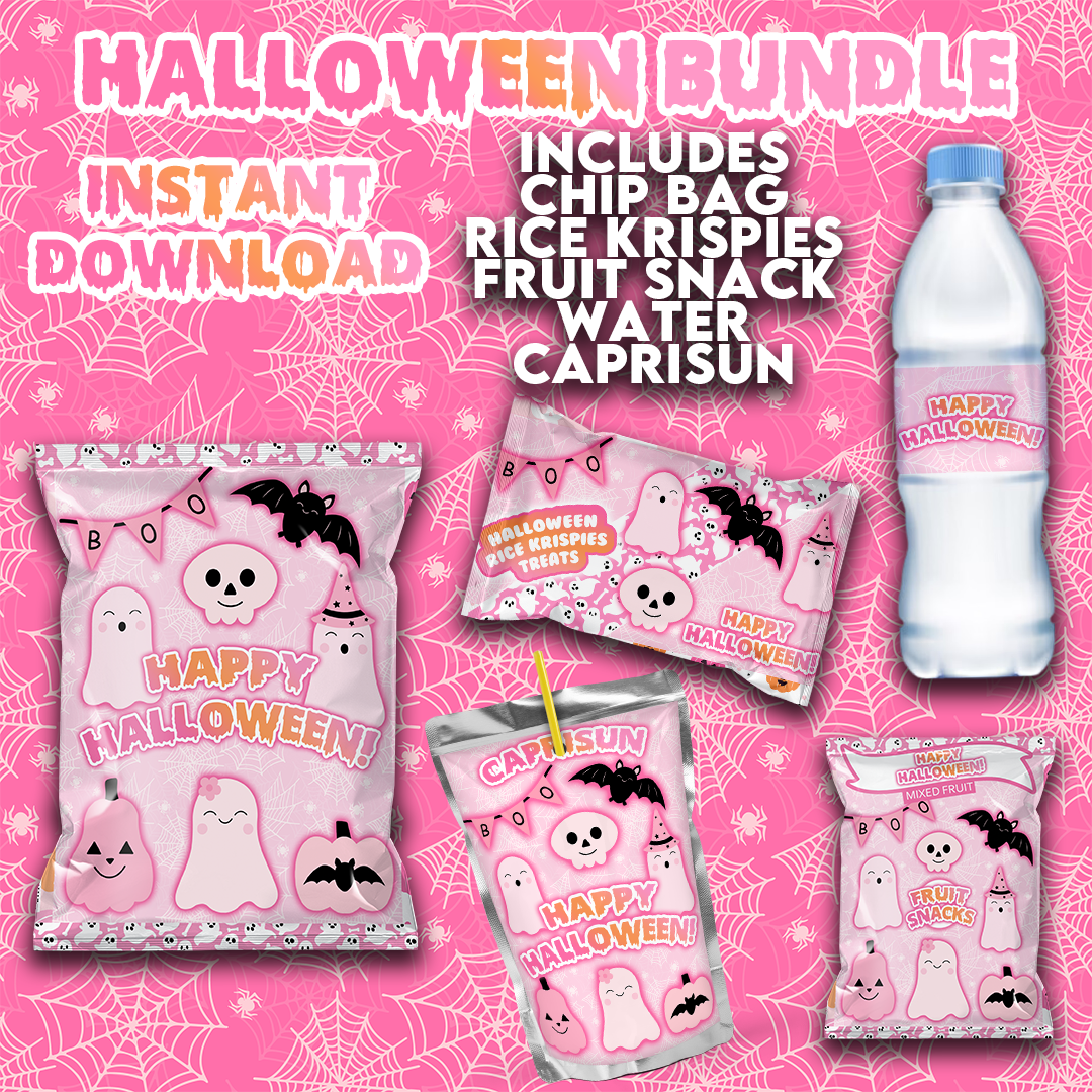 This listing is for a digital PNG file Halloween chip bag, Fruit Snack, Water Bottle, Rice krispies Treat, Caprisun no physical item will be shipped.