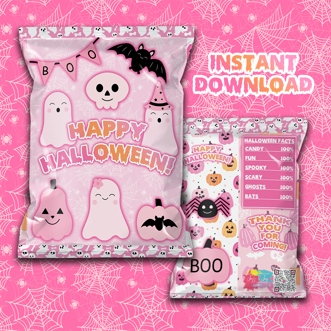 Cute Halloween Chip Bag *Instant Download* Pink Pumpkins