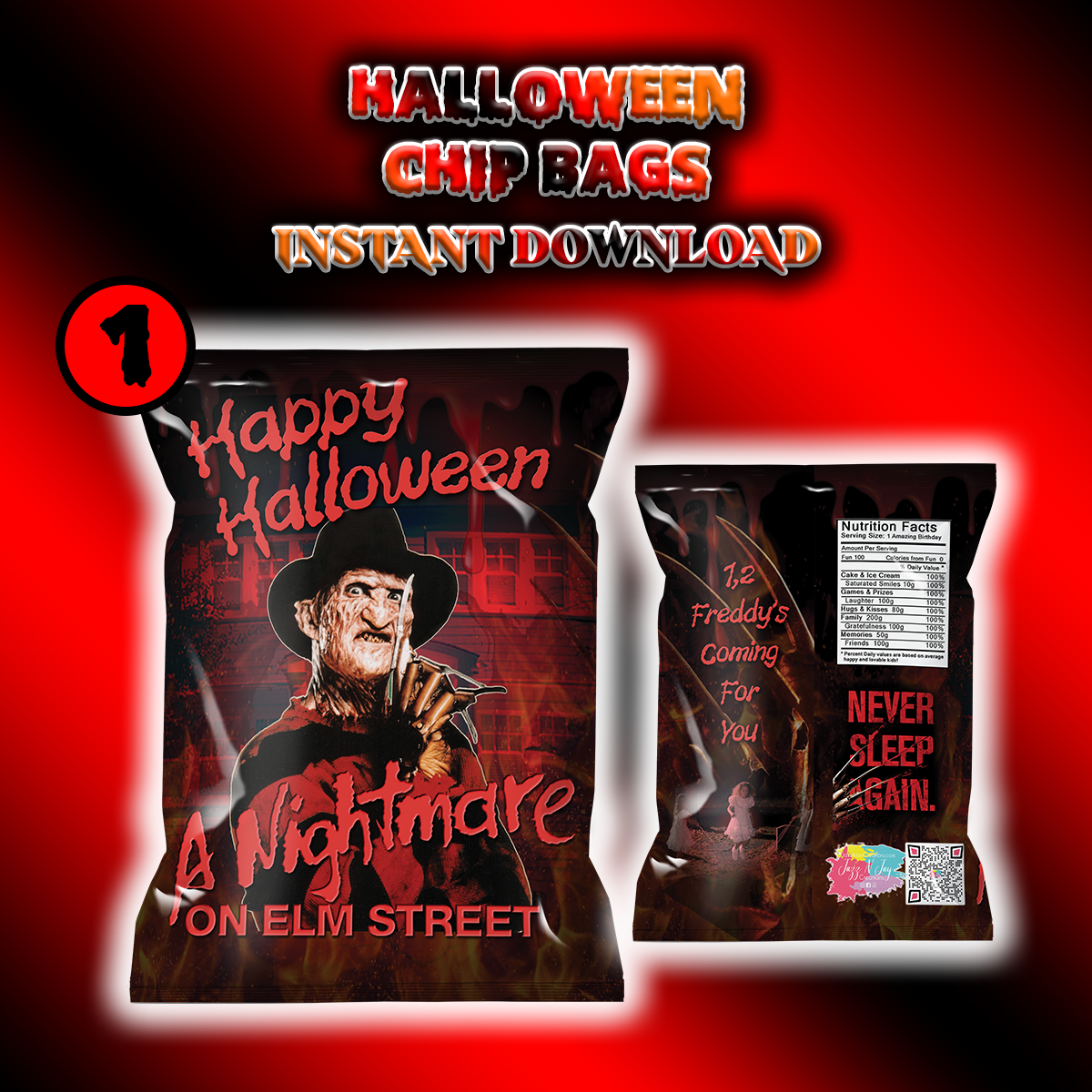 Halloween Chip Bag *Instant Download* Freddy Krueger