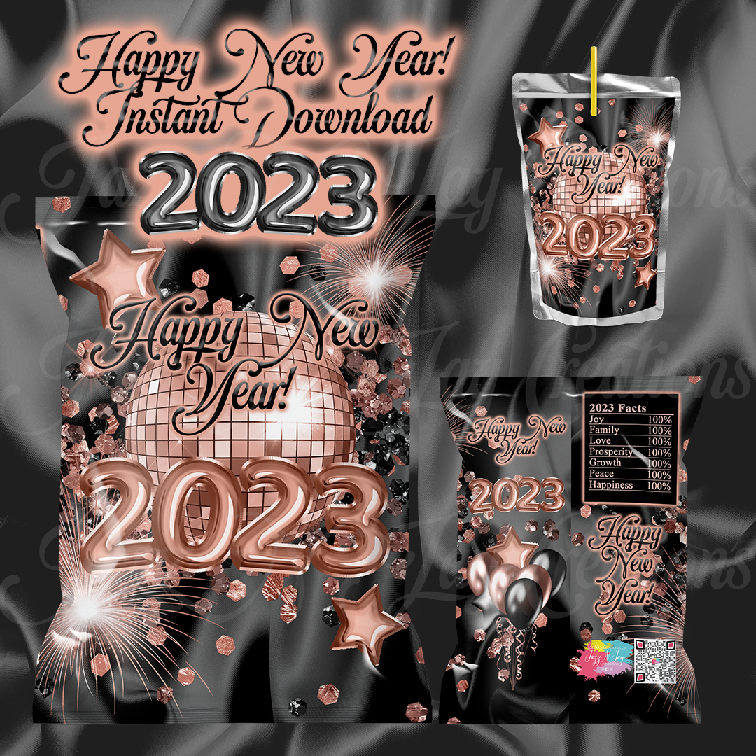New Year 2023 Chip Bag and Juice Pouch label*Instant Download*