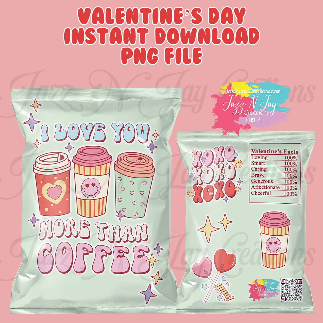 Retro I Love You more than Coffee- Valentine's Day Chip Bags *Instant Download*