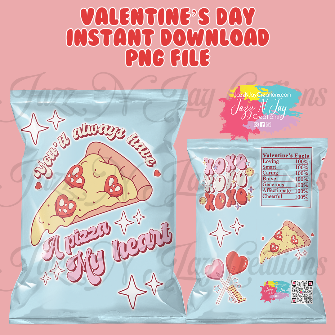 Retro Pizza My Heart- Valentine's Day Chip Bags *Instant Download*